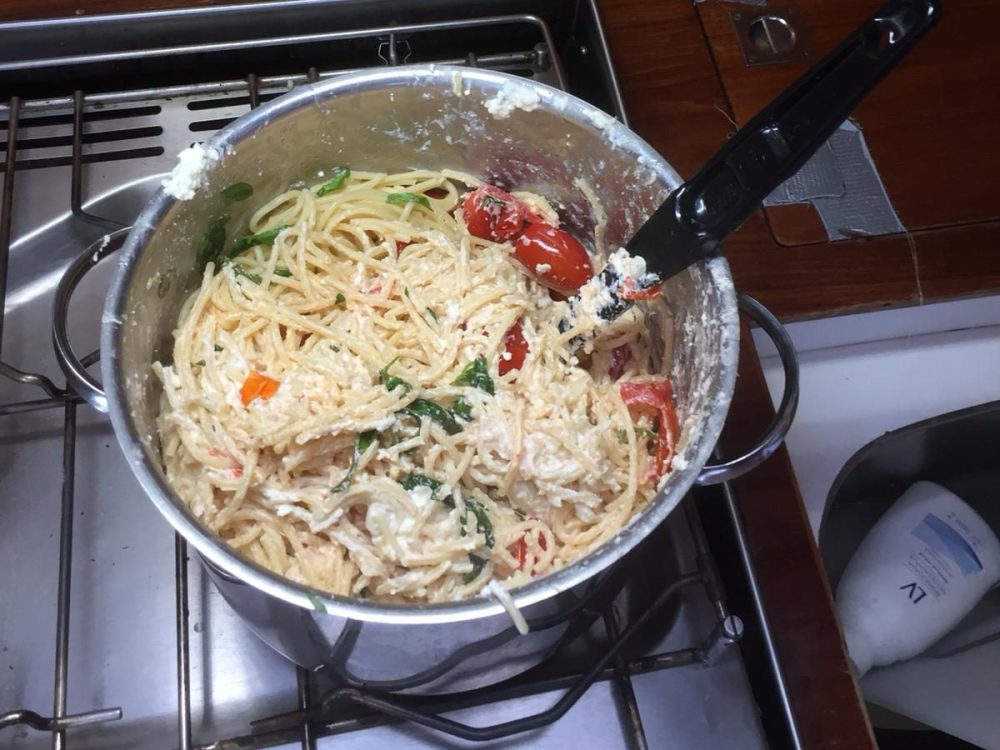 Testasimme purjehduksella hitti-uunifetapastan valmistamista isommalle porukalle ja se onnistui oikein hyvin! Pastasta tuli herkullista ja sen valmistus oli yksinkertaista.